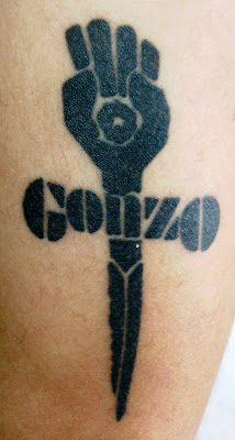 That is the logo of Hunter S. Thompson, who invented the concept of Gonzo Journalism. As a huge fan of the book Fear and Loathing in Las Vegas (see my BillyBlog post here), as well as Dr. Thompson's other writings, I greatly appreciated Christian's nod to the late great Hunter S.